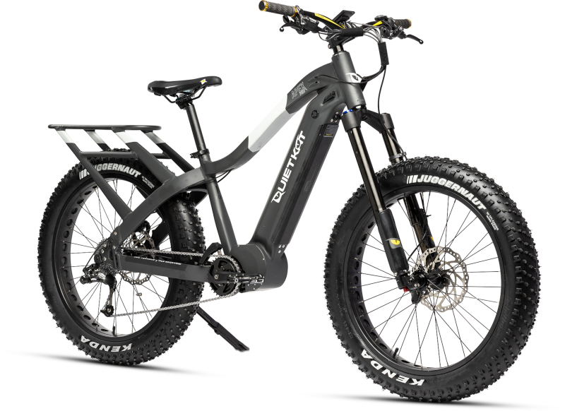 The all-new Apex features an integrated battery and motor system and equipped with top components including an upgraded adjustable air-suspension fork, 4-Piston Tektro hydraulic disc brakes, and a wide-range 9-speed SRAM drivetrain. The Apex uses a 12mm thru-axle on the rear and sealed bearings in both front and rear hubs for maximum performance and capability. The Apex is the pinnacle of QuietKat’s hardtail electric bike lineup.